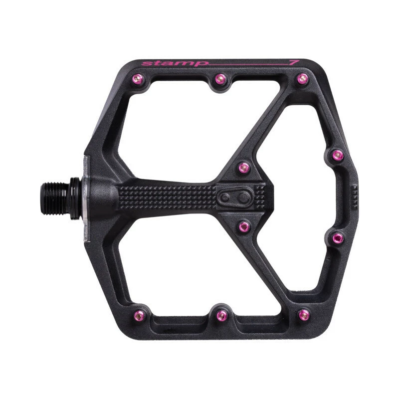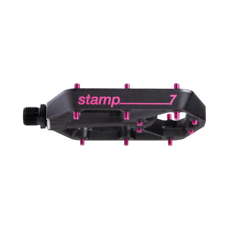 Das neue Crank Brothers Stamp Plattformpedal spielt in einer Liga mit dem 5050, besteht jedoch aus Aluminium. Das Plattformpedal gibt es in zwei Grössen, das kleine wird empfohlen für Schuhgrössen bis 42/43, das grösssere für 43/49. Die Pedalstandfläche ist leicht konkav und auf jeder Seite mit 10 Pins versehen. In den Stamp-Achsen sind zwei Igus-Gleitlager versteckt. Plattformgrösse ist 114mm x 111mm.